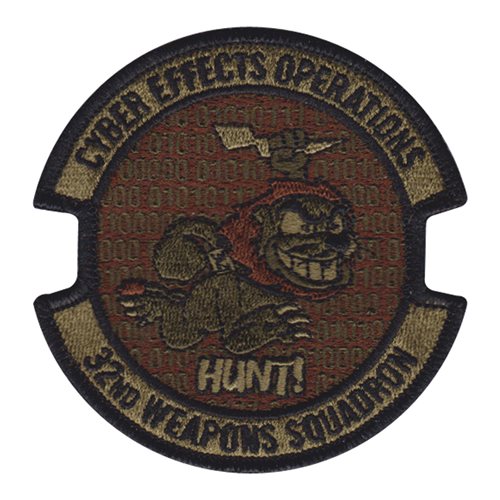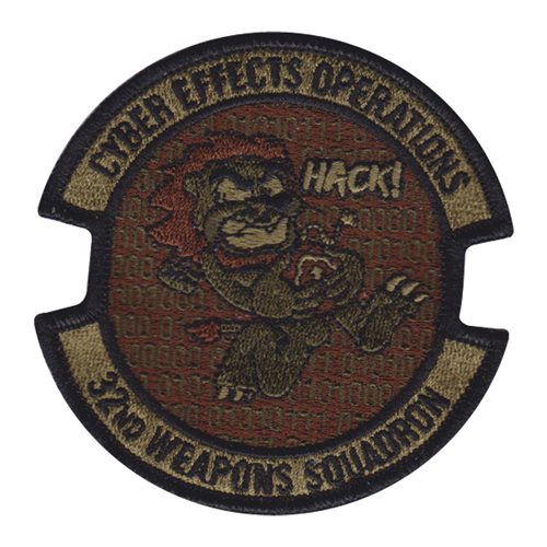 Custom patches for the 32nd Weapons Squadron at Nellis Air Force Base, Nevada. Our 32 WPS patches are 100% embroidered with Velcro backing.