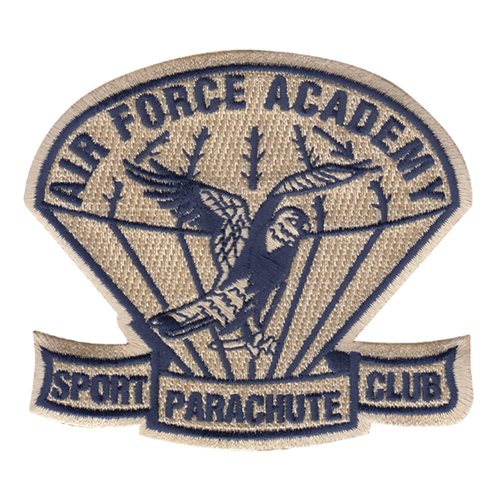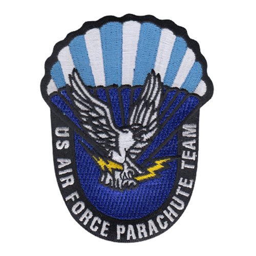Custom patches for the United States Air Force Academy Parachute Team. Our USAFA Parachute Team patches are 100% embroidered with Velcro backing.