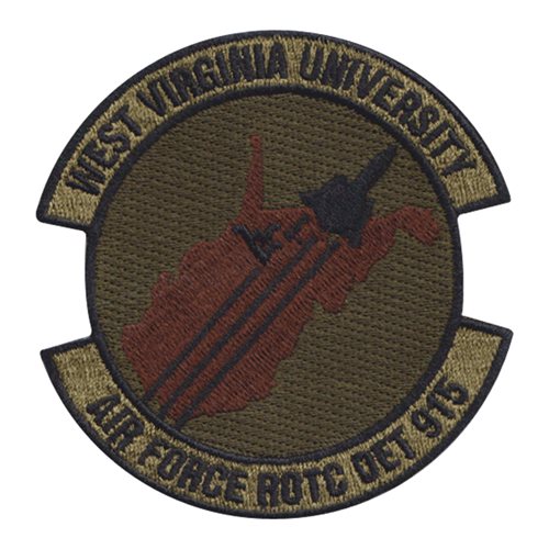 Custom patches for the Air Force Reserve Officer Training Corps Detachment 915 West Virginia University in Morgantown, West Virginia. Our AFROTC Det 915 patches are 100% embroidered with Velcro backing.
