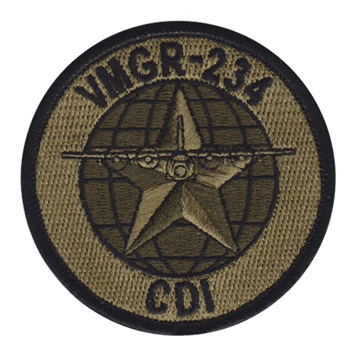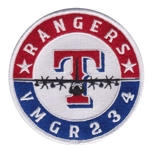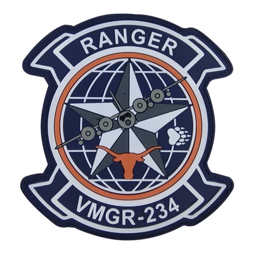Custom patches for the Marine Aerial Refueler Transport Squadron 234 at Naval Air Station Joint Reserve Base Fort Worth. Our VMGR-234 patches are 100% embroidered with Velcro backing.
