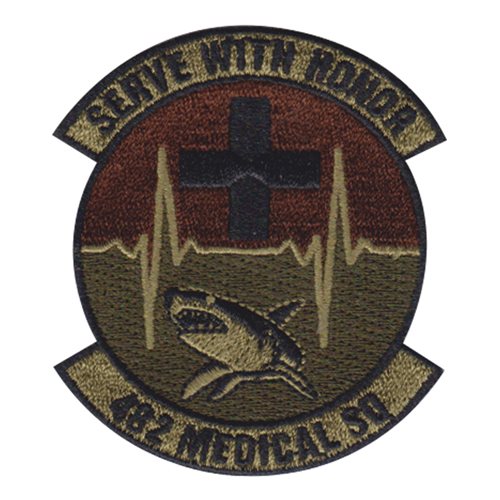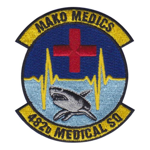 Custom patches for the 482nd Medical Squadron at Homestead Air Reserve Base, Florida. Our 482 MDS patches are 100% embroidered with Velcro backing.