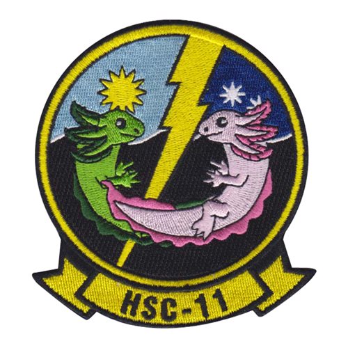 Custom patches for the Helicopter Sea Combat Squadron Eleven at Naval Station Norfolk, Virginia. Our HSC-11 patches are 100% embroidered with Velcro backing.