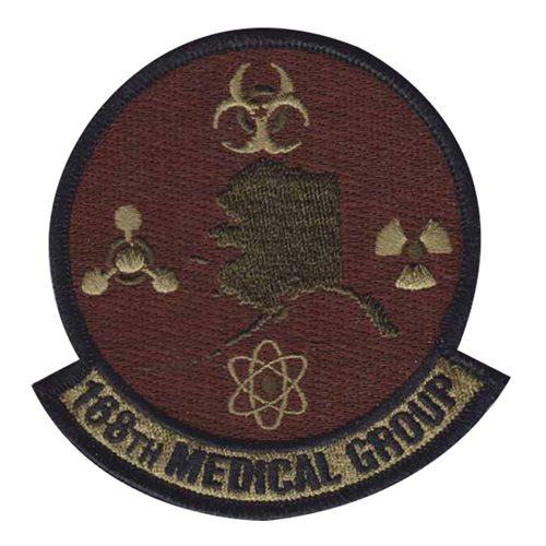 Custom patches for the 168th Medical Group at Eielson Air Force Base, Alaska. Our 168 MDG patches are 100% embroidered with Velcro backing.