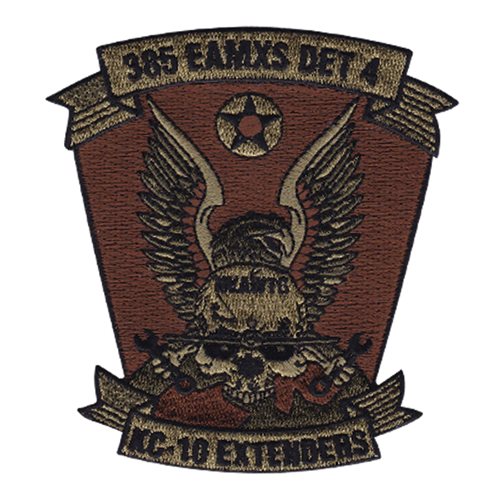 Custom patches for the 385th Expeditionary Aircraft Maintenance Squadron at Bagram Airfield, Afghanistan. Our 385 EAMXS patches are 100% embroidered with Velcro backing.
