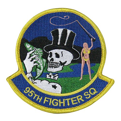 Custom patches for the 95th Fighter Squadron at Tyndall Air Force Base, Florida. Our 95 FS patches are 100% embroidered with Velcro backing.