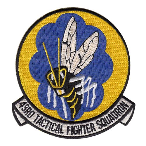 Custom patches for the the 43rd Fighter Squadron at Tyndall Air Force Base, Florida. Our 43 FS patches are 100% embroidered with Velcro backing.