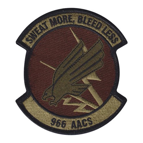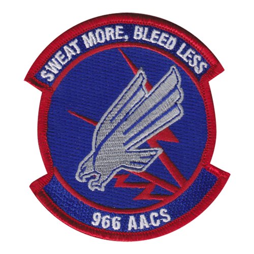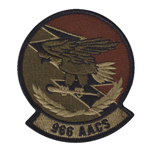 Custom patches for the 966 Airborne Air Control Squadron at Tinker Air Force Base, Oklahoma, Japan. Our 966 AACS patches are 100% embroidered with Velcro backing.