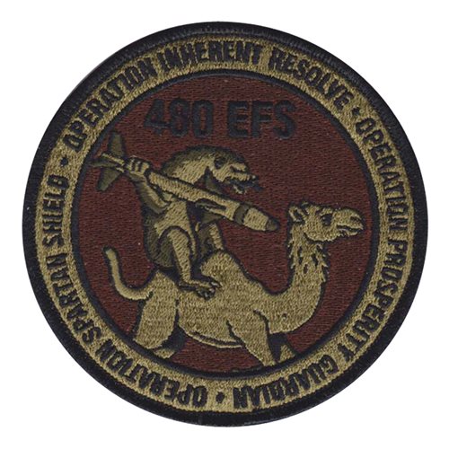 Custom patches for the 480th Fighter Squadron at Spangdahlem Air Base, Germany. Our 480 FS patches are 100% embroidered with Velcro backing.
