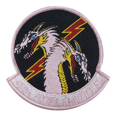 Custom patches for the 459th Flying Training Squadron at Sheppard Air Force Base, Texas. Our 459 FTS patches are 100% embroidered with Velcro backing.