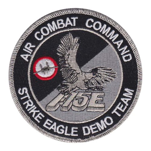 Custom patches for the F-15E Demo Team at Seymour Johnson Air Force Base, North Carolina. Our F-15E Demo Team patches are 100% embroidered with Velcro backing./p>