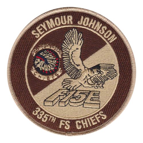Custom patches for the 335th Fighter Squadron at Seymour Johnson Air Force Base, North Carolina. Our 335 FS patches are 100% embroidered with Velcro backing.