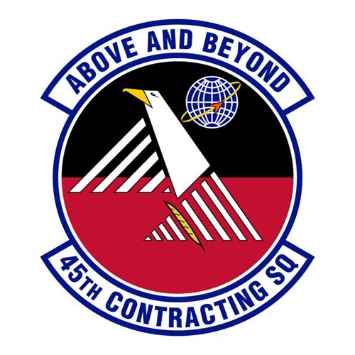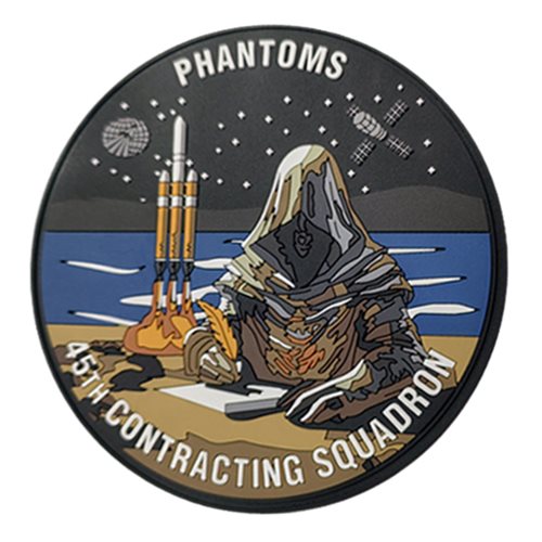 Custom patches for the 45th Contracting Squadron at Patrick Air Force Base, Florida. Our 45 CONS patches are 100% embroidered with Velcro backing.