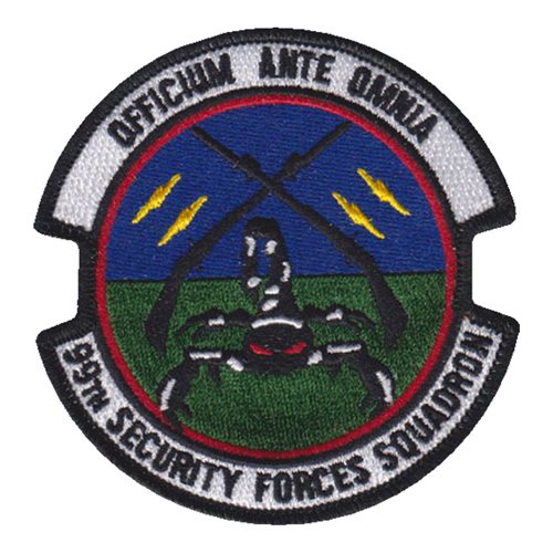 Custom patches for the 99th Security Forces Squadron at Nellis Air Force Base, Nevada. Our 99 SFS patches are 100% embroidered with Velcro backing.