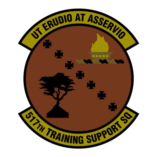Custom patches for 517th Training Support Squadron at at Goodfellow Air Force Base, Texas. Our 517 TRSS patches are 100% embroidered with Velcro backing.