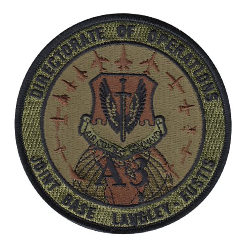 Custom patches for the Headquarters Air Combat Command Directorate of Air and Space Operations. Our HQ ACC A3 patches are 100% embroidered with Velcro backing.
