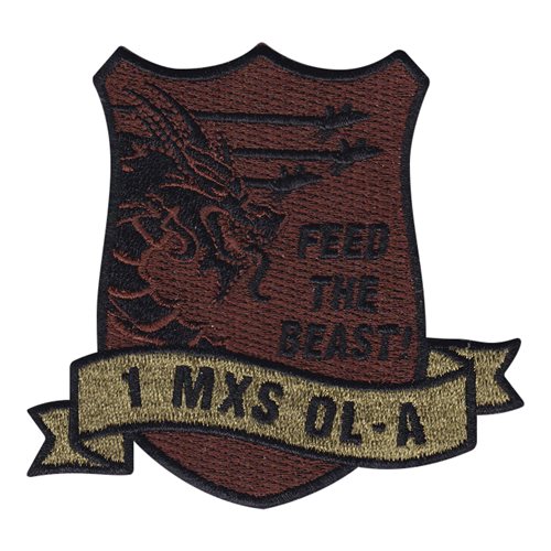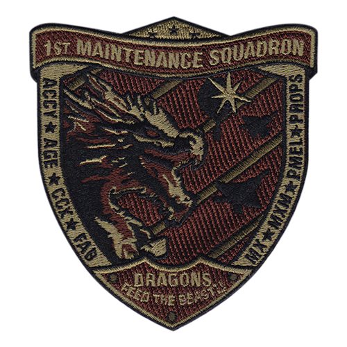 Custom patches for the 1st Maintenance Squadron at Langley Air Force Base at Virginia. Our 1 MXS patches are 100% embroidered with Velcro backing.