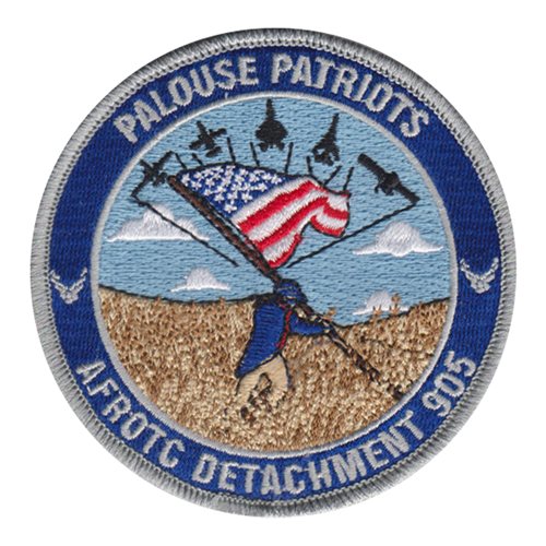 Custom patches for the Air Force Reserve Officer Training Corps Detachment 905 Washington State University. Our AFROTC Det 905 patches are 100% embroidered with Velcro backing.
