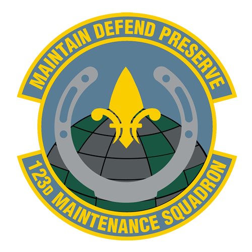 Custom patches for the 123rd Maintenance Squadron at Air National Guard, Louisville, Kentucky. Our 123 MXS patches are 100% embroidered with Velcro backing.