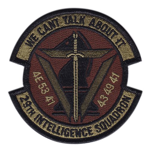 Custom patches for the 29th Intelligence Squadron at Fort Meade, Maryland. Our 29 IS patches are 100% embroidered with Velcro backing.