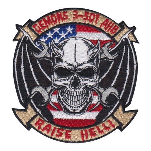 Custom patches for the3-501 Assault Helicopter Battalion. Our 3-501 AHB patches are 100% embroidered with Velcro backing.