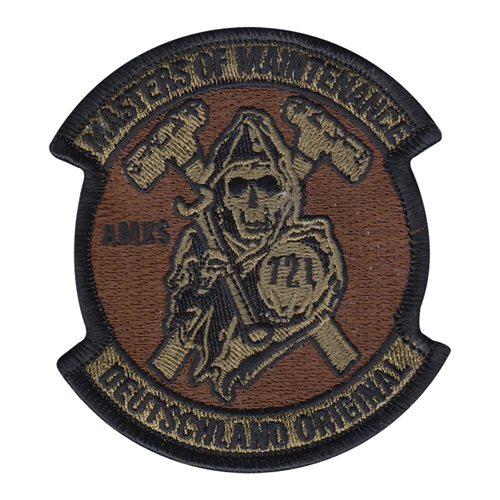 Custom patches for the 721st Aircraft Maintenance Squadron at Ramstein Air Base, Germany. Our 721 AMXS patches are 100% embroidered with Velcro backing.