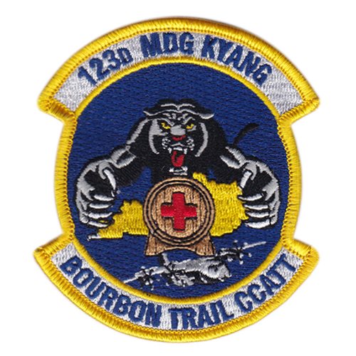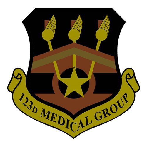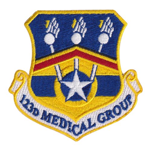 Custom patches for the 123rd Medical Group at Air National Guard, Louisville, Kentucky. Our 123 MDG KY ANG patches are 100% embroidered with Velcro backing.