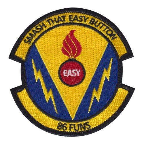 Custom patches for the 86th Munitions Squadron at Ramstein Air Base, Germany. Our 86 MUNS patches are 100% embroidered with Velcro backing.