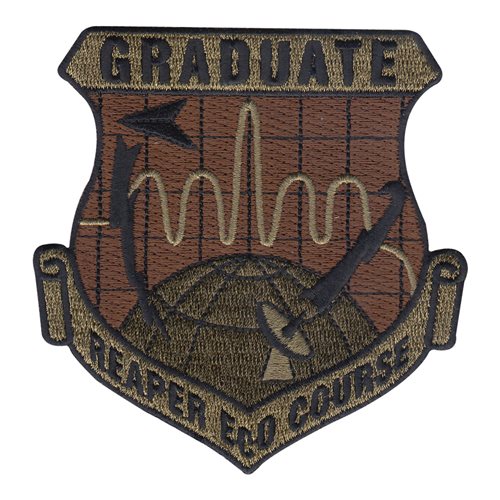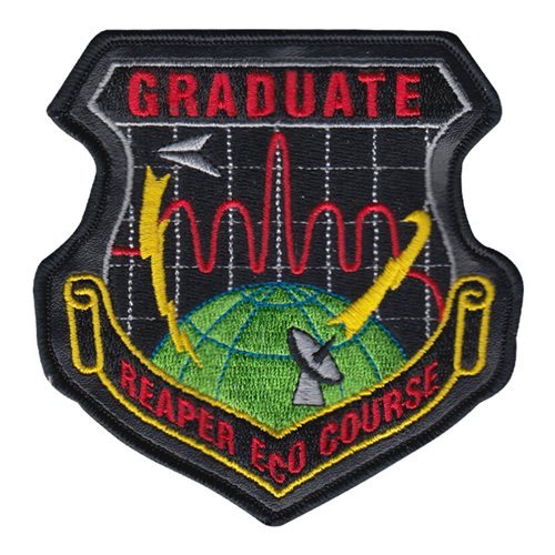 Custom patches for the Remotely Piloted Aircraft Electronic Combat Officers Course at Nellis Air Force Base, Nevada. Our RPA ECO Course patches are 100% embroidered with Velcro backing.