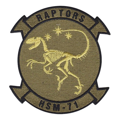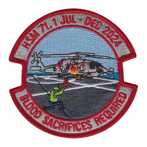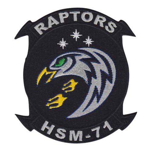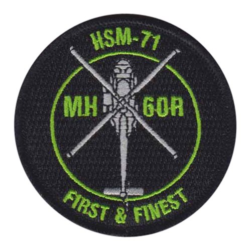 Custom patches for the Helicopter Maritime Strike Squadron Seven One at NAS North Island, San Diego, California. Our HSM-71 patches are 100% embroidered with Velcro backing.