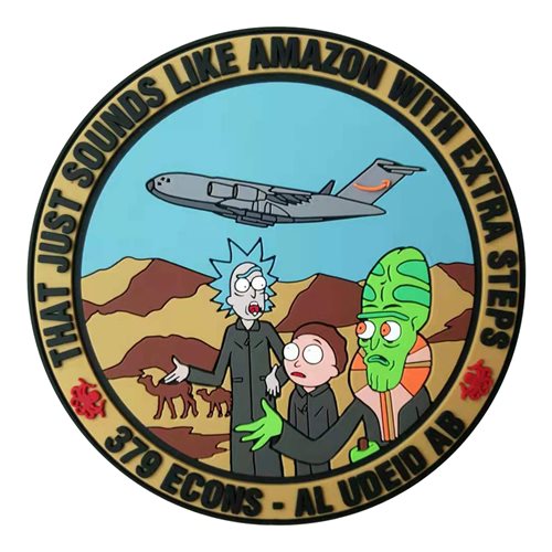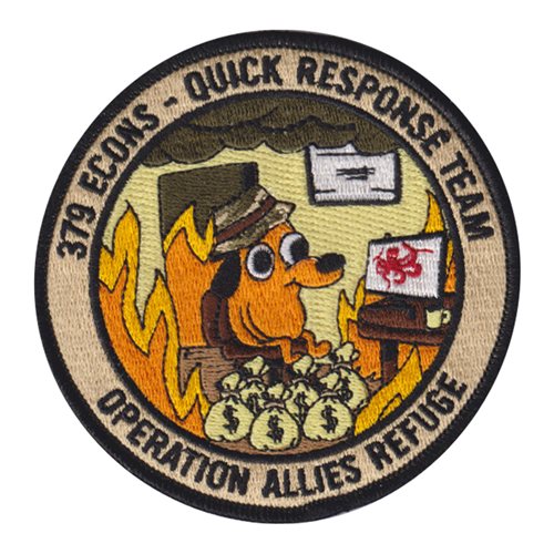 Custom patches for the 379th Expeditionary Contracting Squadron at Al Udeid Air Base, Qatar. Our 379 ECONS patches are 100% embroidered with Velcro backing.