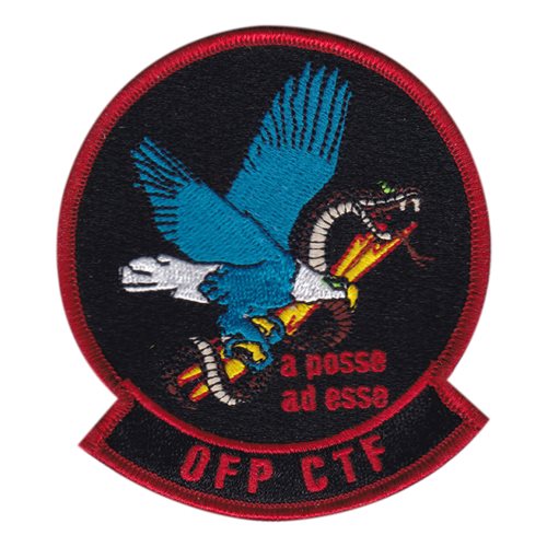 Custom patches for Operational Flight Program Combined Test Force at Eglin Air Force Base, Florida. Our OFP CTF patches are 100% embroidered with Velcro backing.