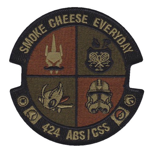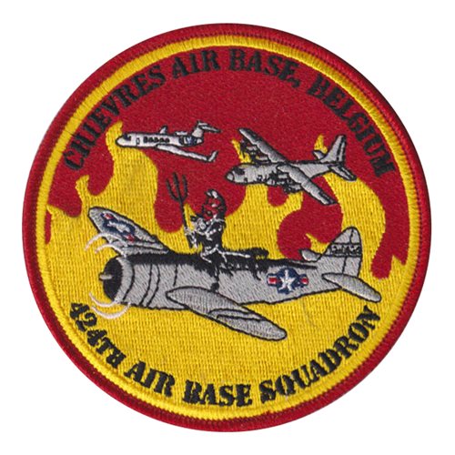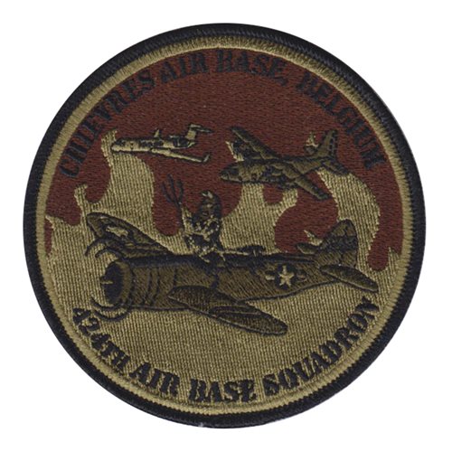 Custom patches for the 424th Air Base Squadron at Royal Air Force Welford. Our 424 ABS patches are 100% embroidered with Velcro backing.