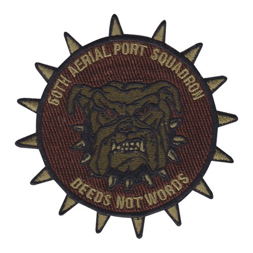 Custom patches for the 60th Aerial Port Squadron at Travis Air Force Base, California. Our 60 APS patches are 100% embroidered with Velcro backing.
