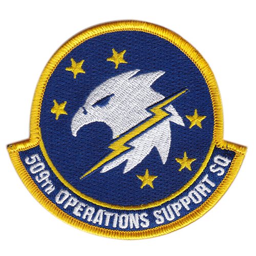 Custom patches for the 509th Operations Support Squadron at Whiteman Air Force Base, Missouri. Our 509 OSS patches are 100% embroidered with Velcro backing.