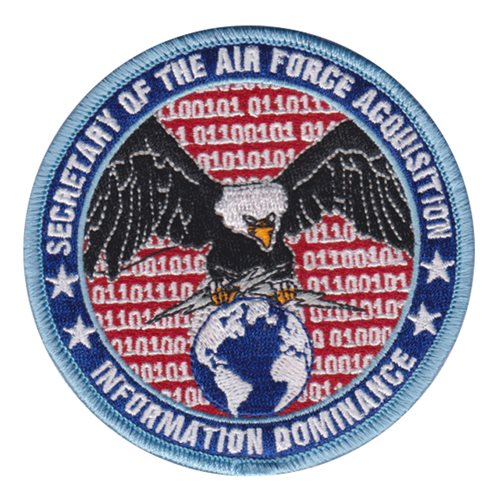 Custom patches for the Secretary of the Air Force Information Dominance Directorate. Our SAF AQI patches are 100% embroidered with Velcro backing.
