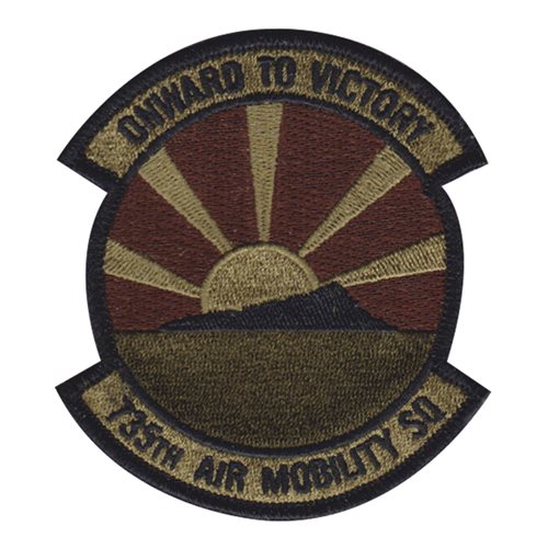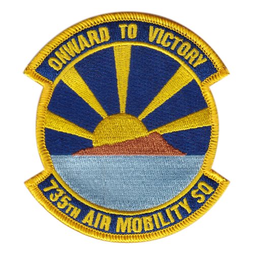 Custom patches for 735th Air Mobility Squadron at Hickam Air Force Base, Hawaii. Our 735 AMS patches are 100% embroidered with Velcro backing.
