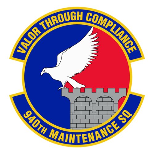 Custom patches for the 940th Maintenance Squadron at Hill Air Force Base, Utah. Our 940 MXS patches are 100% embroidered with Velcro backing.