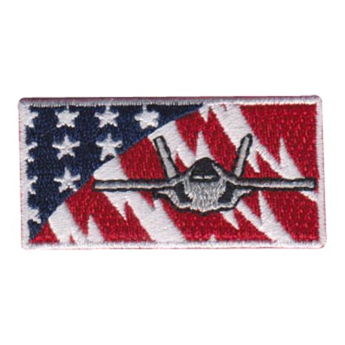 Custom patches for the F-35A Lightning II Demo Team at the Luke AFB, Arizona. Our F-35 Demo Team patches are 100% embroidered with Velcro backing.