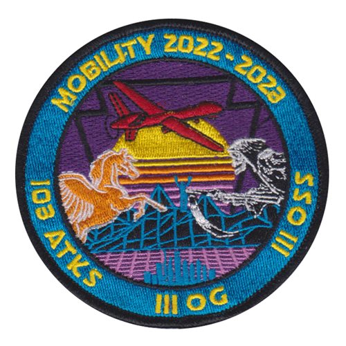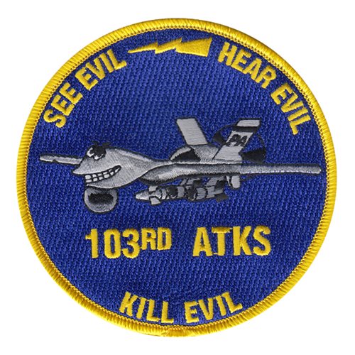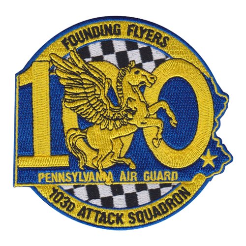 Custom patches for the103rd Attack Squadron at Horsham Air National Guard Station, Willow Grove, Pennsylvania. Our 103 ATKS PA ANG patches are 100% embroidered with Velcro backing.