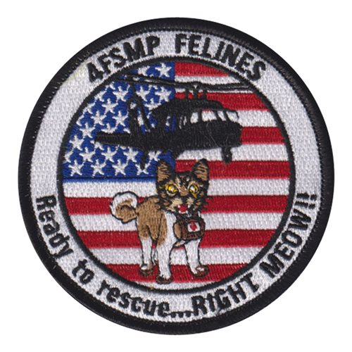 Custom patches for the 4th Five Forward Support Medical & Security Evacuations Platoons at Fort Hood, Texas. Our 4 FSMP patches are 100% embroidered with Velcro backing.