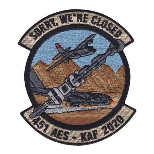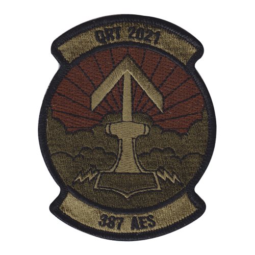 Custom patches for the 387th Air Expeditionary Squadron at Ali Al Salem Air Base, Kuwait. Our 387 AES patches are 100% embroidered with Velcro backing.
