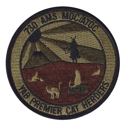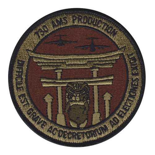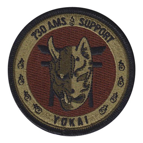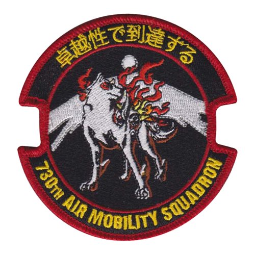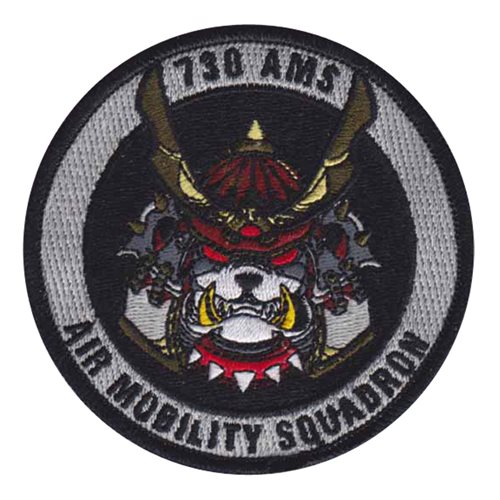 Custom patches for the 730th Air Mobility Squadron at Yokota Air Base, Japan. Our 730 AMS patches are 100% embroidered with Velcro backing.