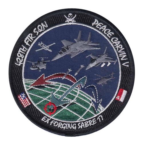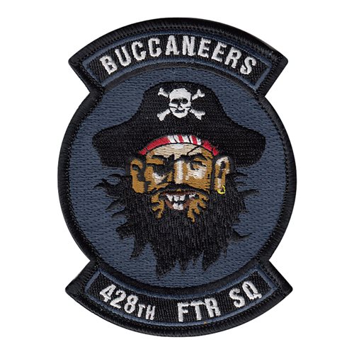 Custom patches for the 428th Fighter Squadron at Mountain Home Air Force Base, Idaho flying the Boeing F-15SG. Our 428 FS patches are 100% embroidered with Velcro backing.