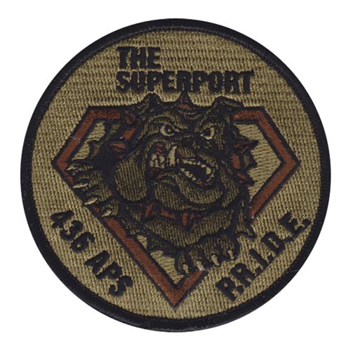Custom patches for the 436th Aerial Port Squadron at Dover Air Force Base, Delaware. Your 436 APS patches are 100% embroidered with Velcro backing.