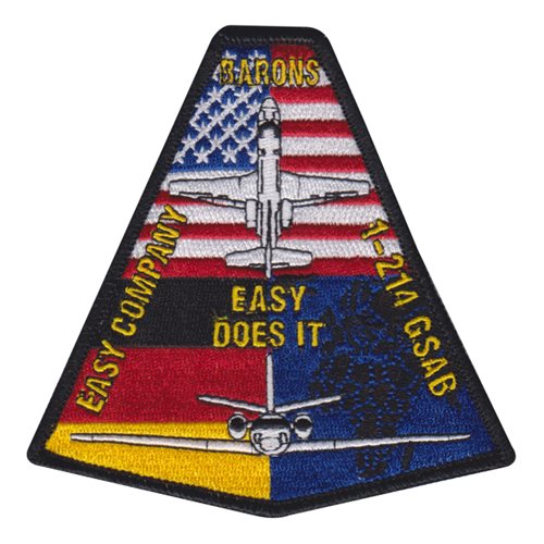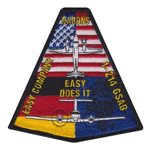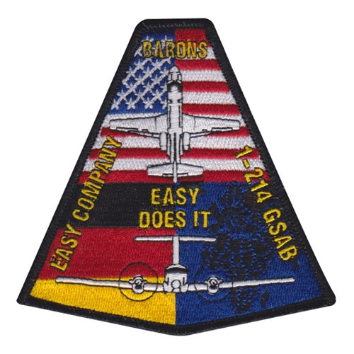 Custom patches for the 1-214th General Support Aviation Battalion. Our 1-214 GSAB patches are 100% embroidered with Velcro backing.