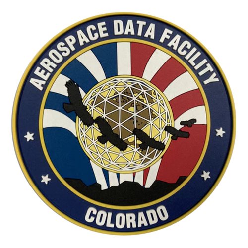 Custom patches for the Aerospace Data Facility Colorado. Our ADF-C patches are 100% embroidered with Velcro backing.