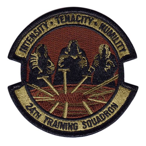 Custom patches for the 24th Training Squadron at Maxwell Air Force Base, Alabama. Our 24 TRS patches are 100% embroidered with Velcro backing.