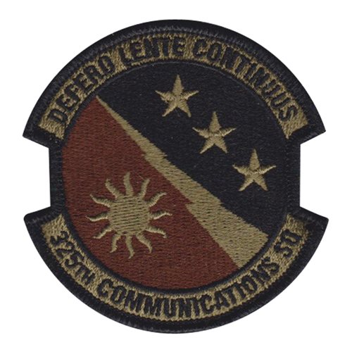 Custom patches for the 325th Communications Squadron at Tyndall Air Force Base, Florida. Our 325 CS patches are 100% embroidered with Velcro backing.
