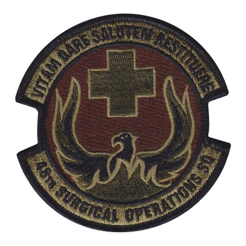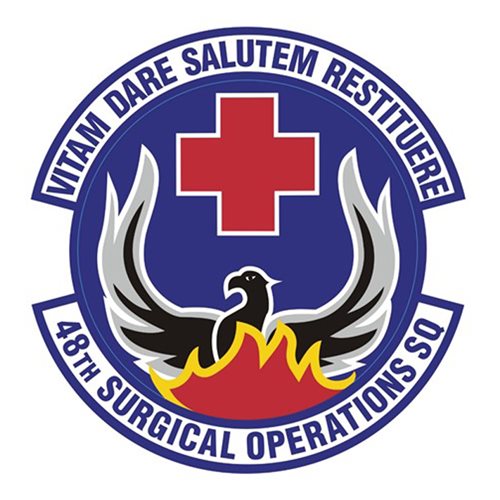 Custom patches for the 48th Surgical Operations Squadron at Royal Air Force Lakenheath, England. Our 48 SGCS patches are 100% embroidered with Velcro backing.