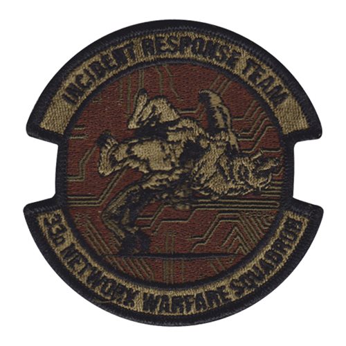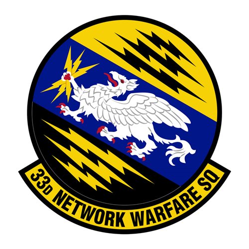 Custom patches for the 33rd Network Warfare Squadron at Lackland Air Force Base, Texas. Your 33 NWS patches are 100% embroidered with Velcro backing.